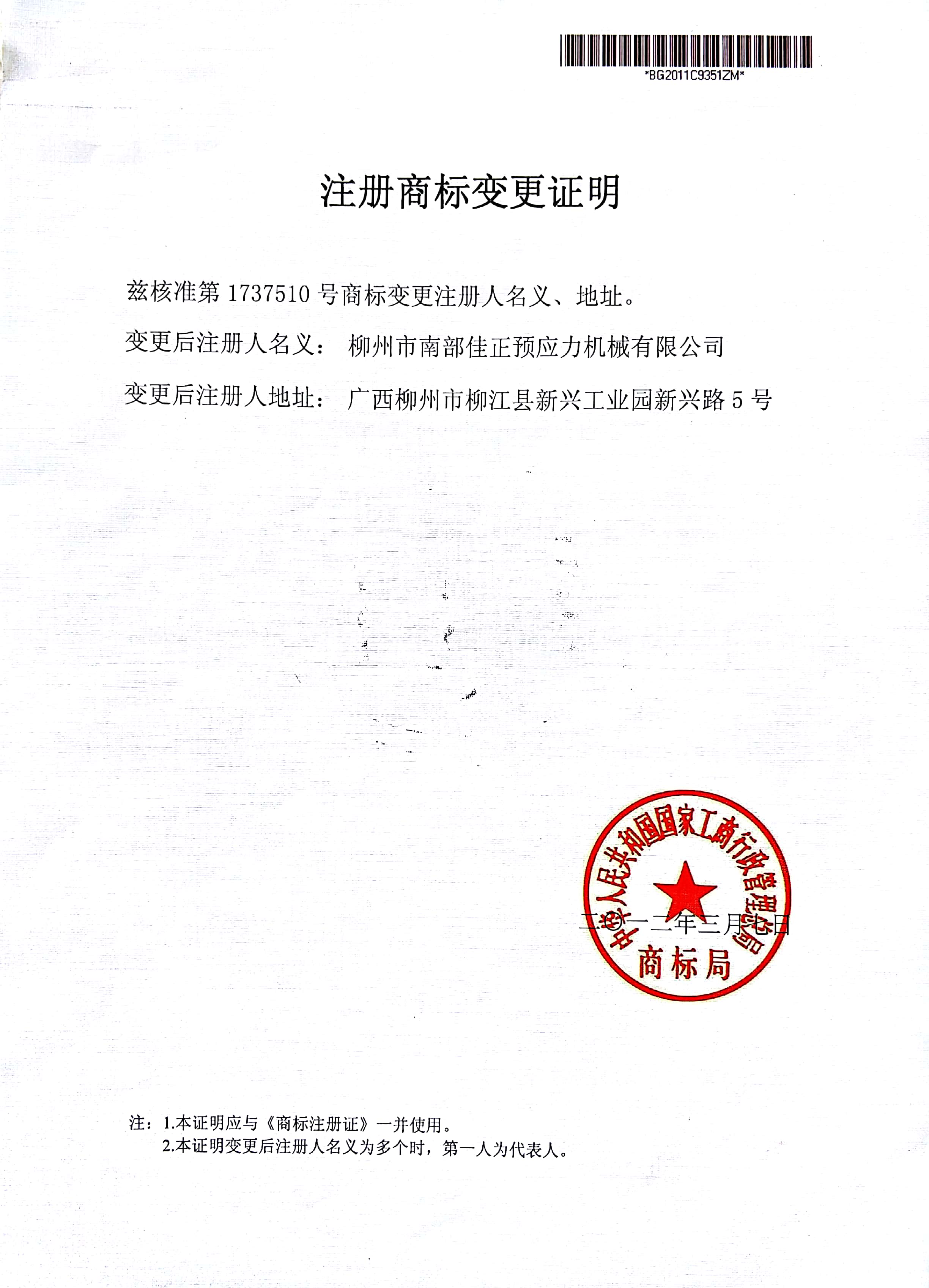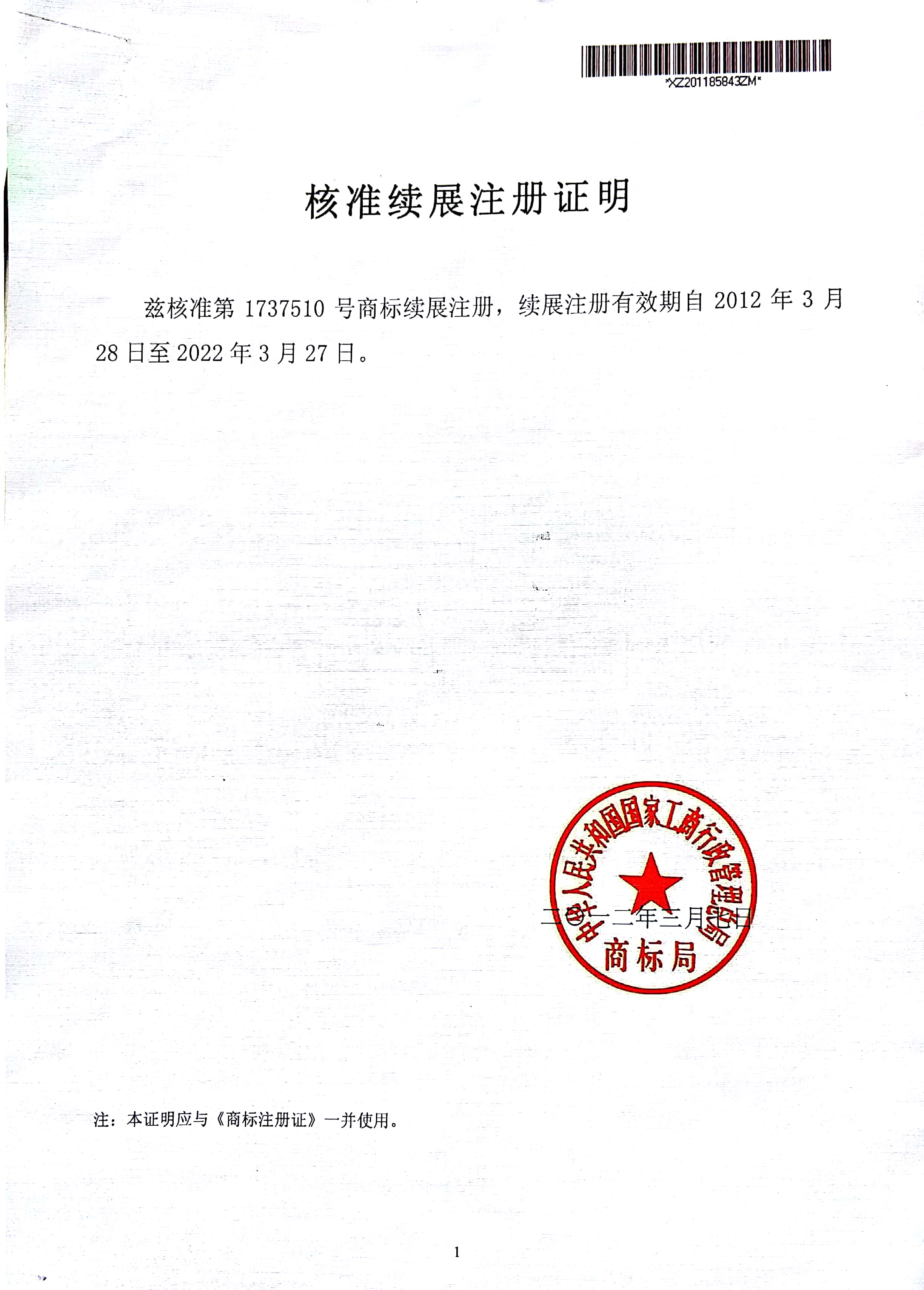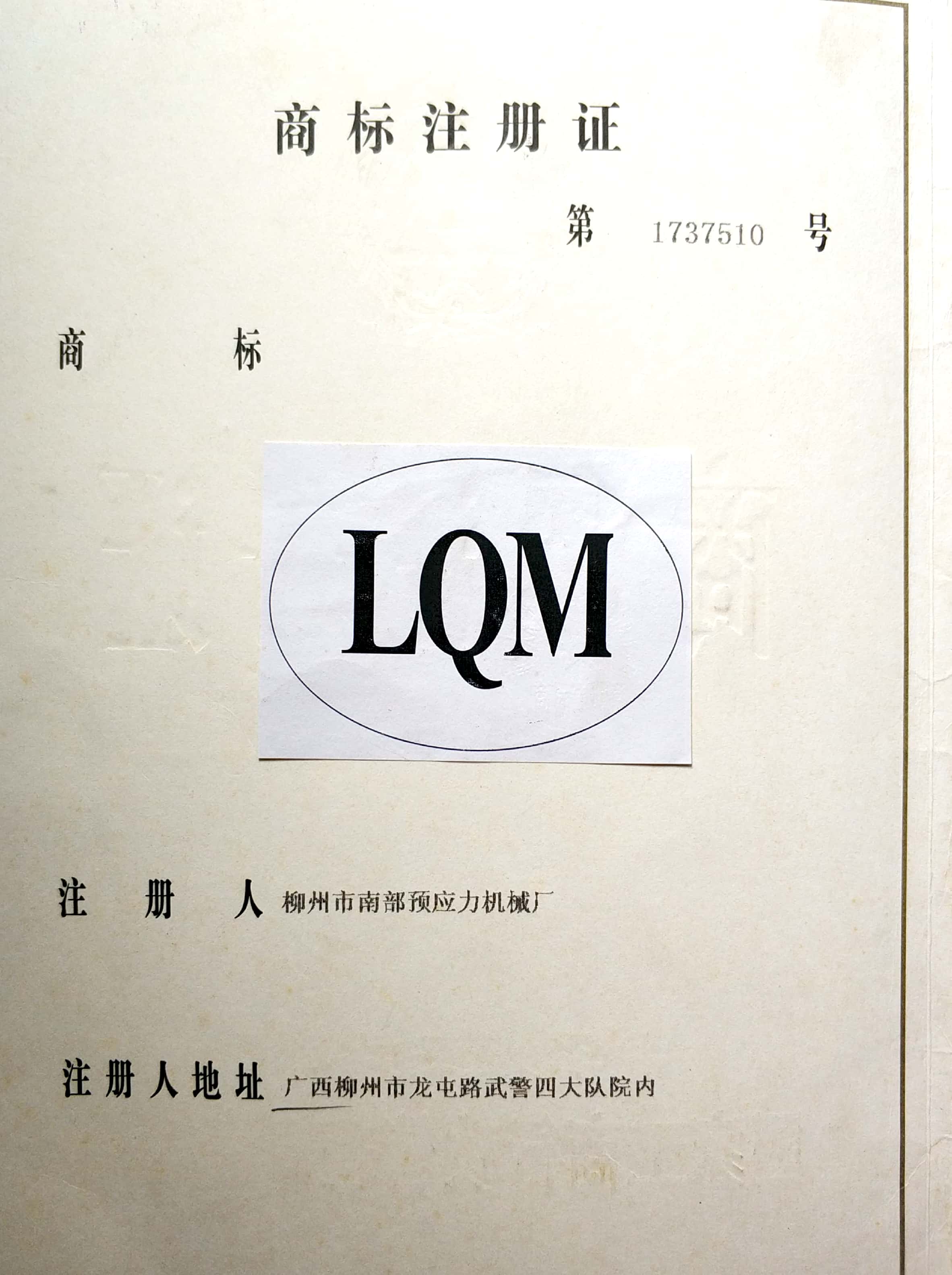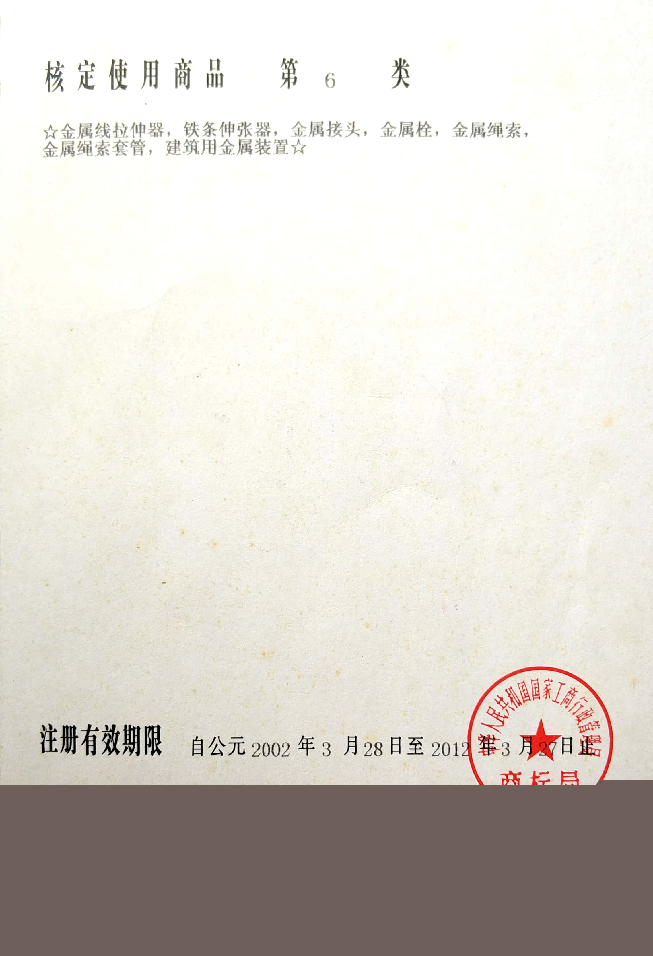 Trade mark registration certificate
