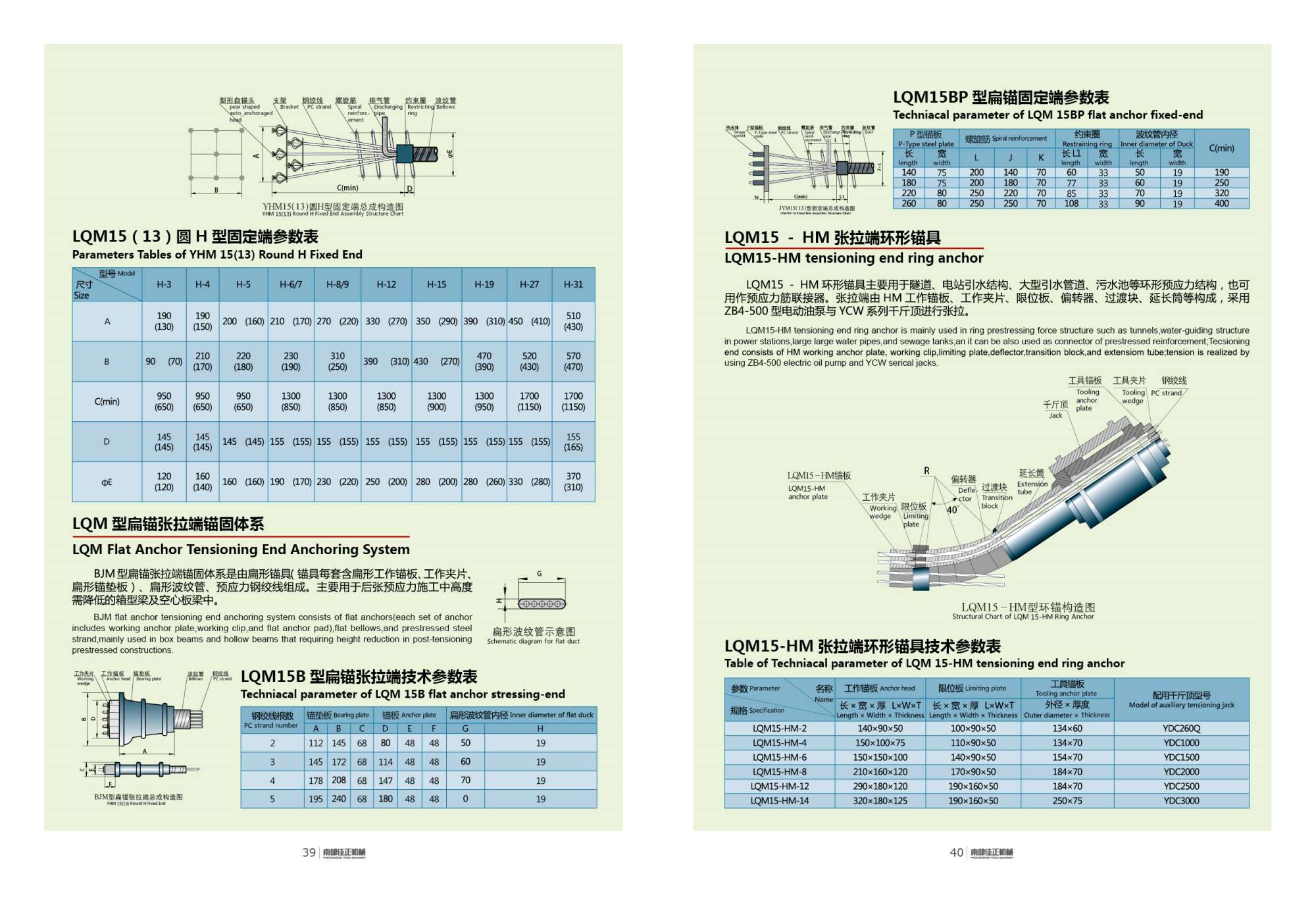 LQM15B 型扁錨張拉端技術(shù)參數(shù)表