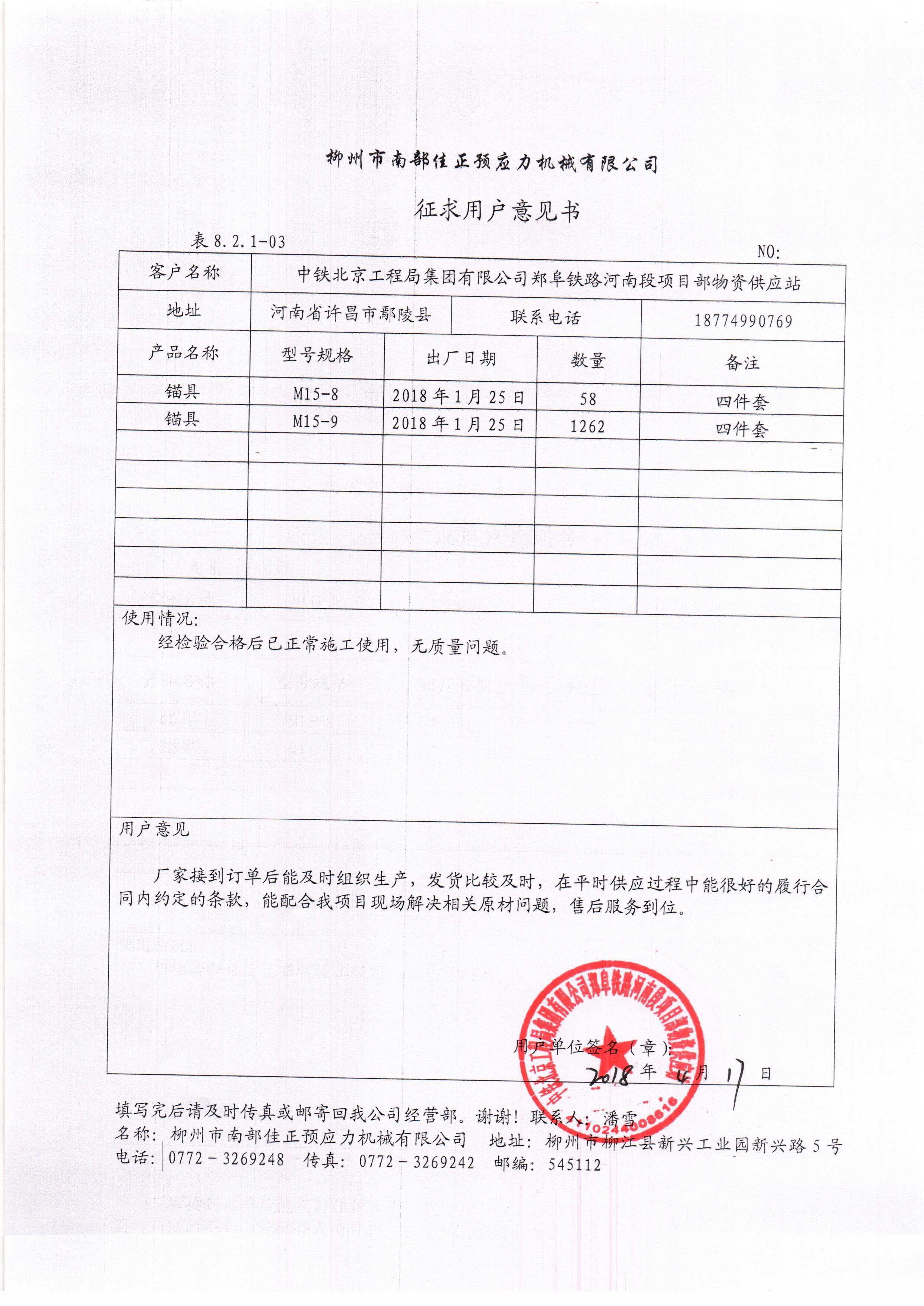 廣西南部佳正預應力機械有限公司現(xiàn)場施工使用良好、無夾片彈飛等情況,很專業(yè)...